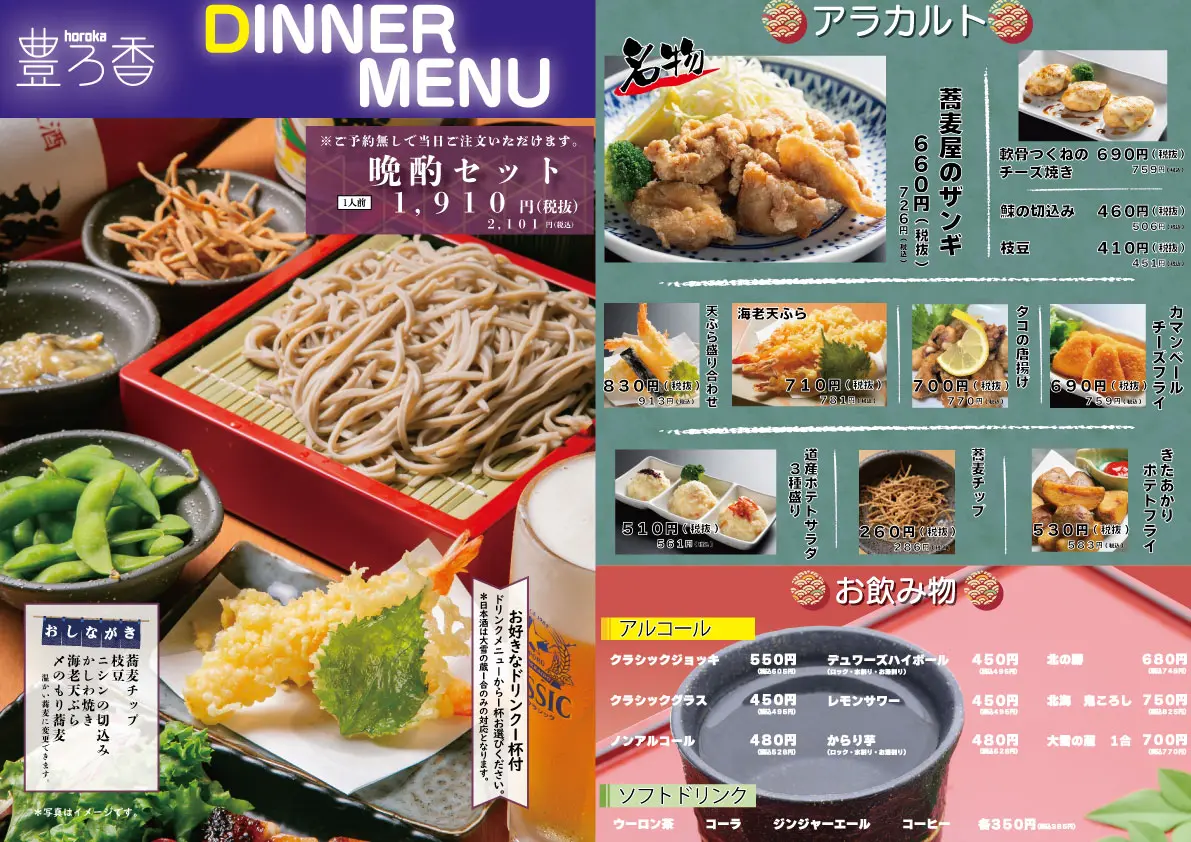 札幌・大谷地のショッピングモール「CAPO大谷地」。2階「豊ろ香(ほろか) CAPO大谷地店」は、十割蕎麦を中心に、北海道の味覚を気軽に楽しめる和食処です。