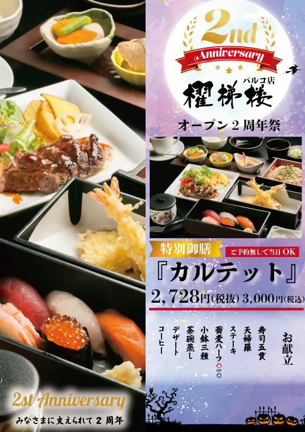 釧路ふく亭櫂梯楼パルコ店は、おかげさまで開店2周年を迎えます。