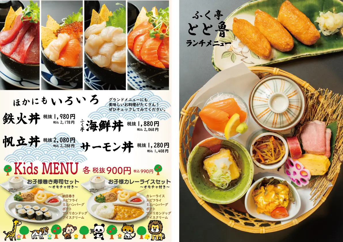 JR旭川駅直結、イオンモール旭川駅前の4階に佇む「ふく亭 とと魯」。道東から直送される新鮮な魚介を中心に、北海道の四季を映す料理や郷土料理が気軽に楽しめます。