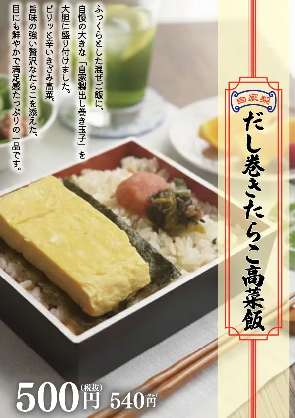 ーーー 自家製だし巻きたらこ高菜飯